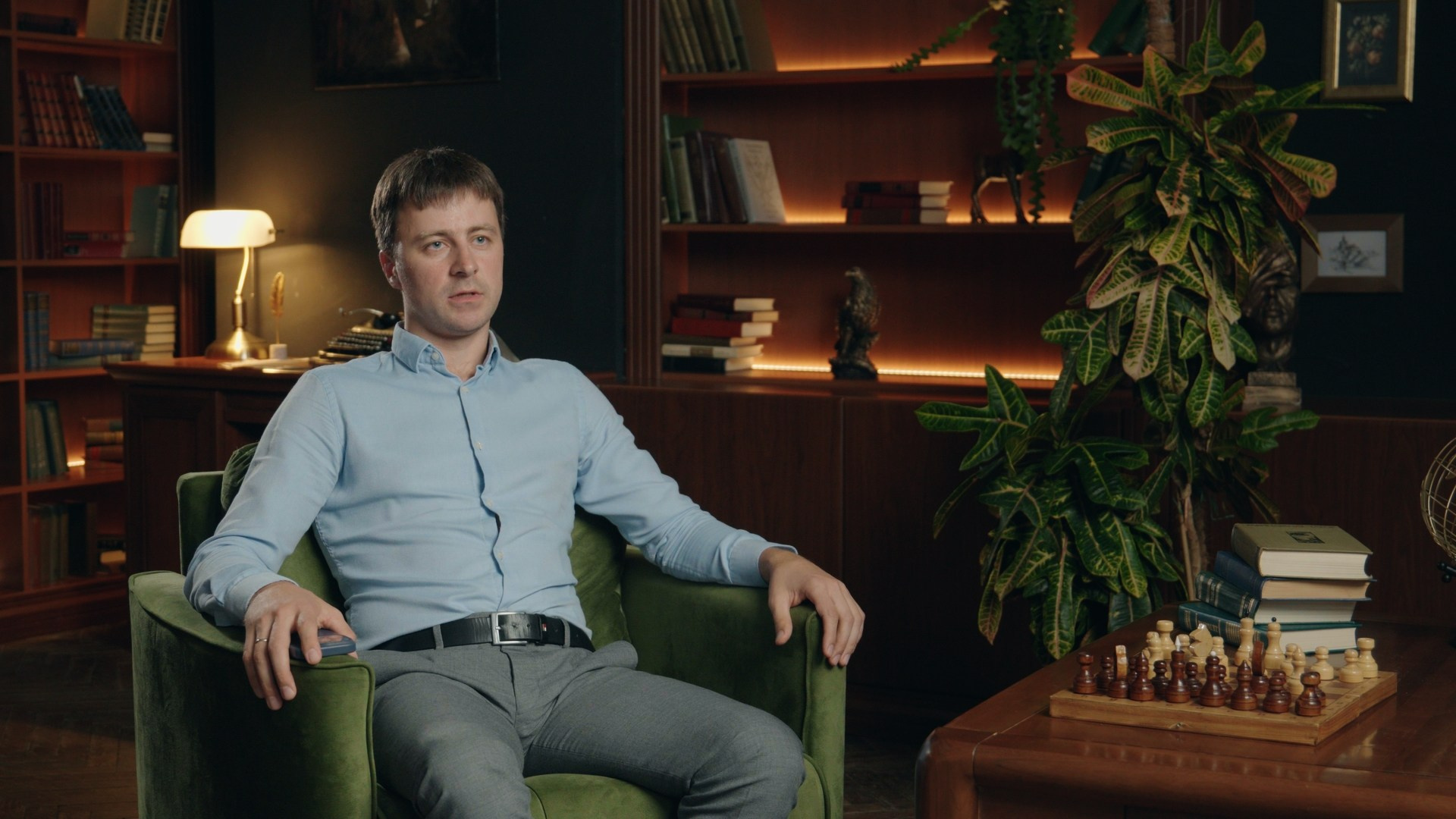 На этом этапе проходит съемка видео интервью: обеспечиваем подходящее освещение, выбираем удачные ракурсы и проводим интервью. Параллельно с этим мы готовим дополнительную графику.